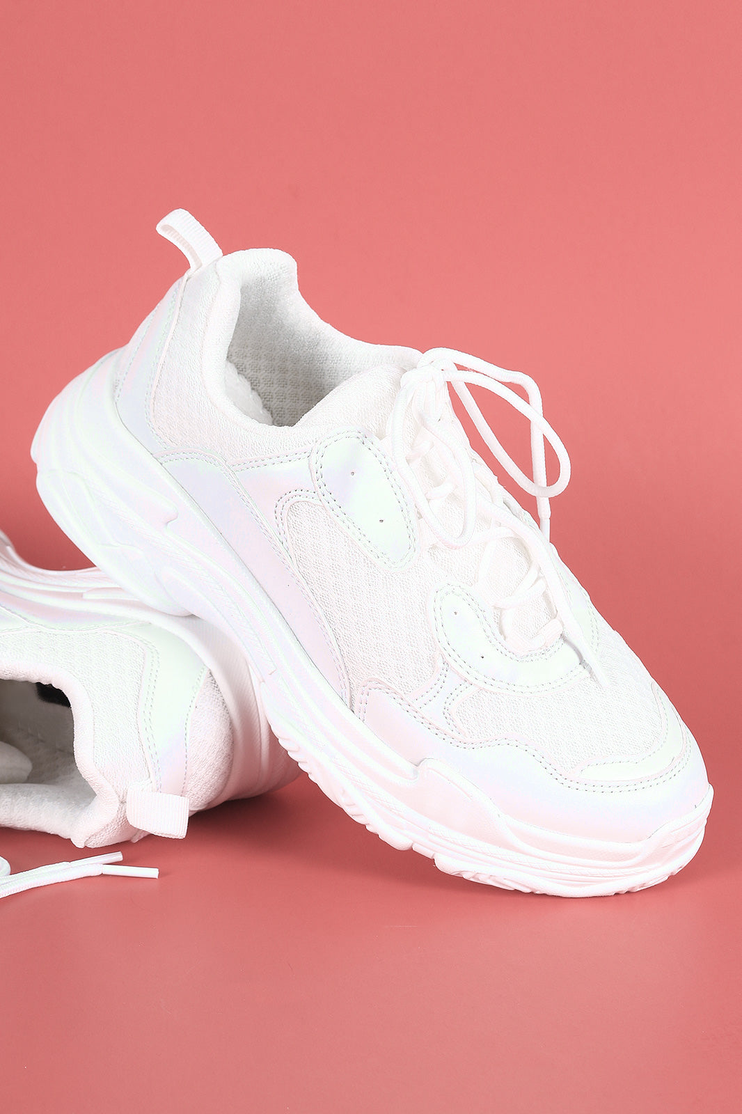 This low top sneaker features a round toe silhouette, vegan leather upper with breathable mesh trim, back pull-tab, and lace-up closure. Finished with a padded collar/tongue and cushioned insole for comfort.