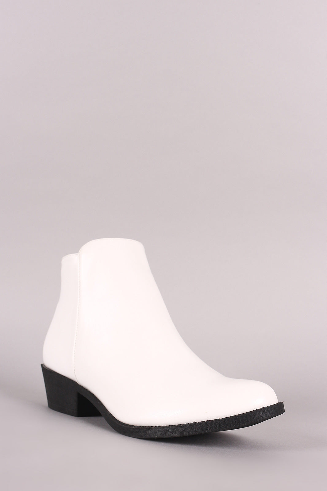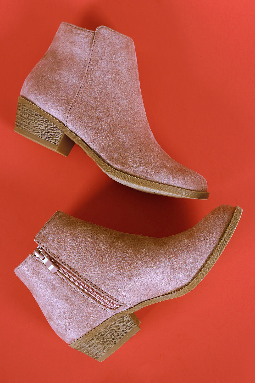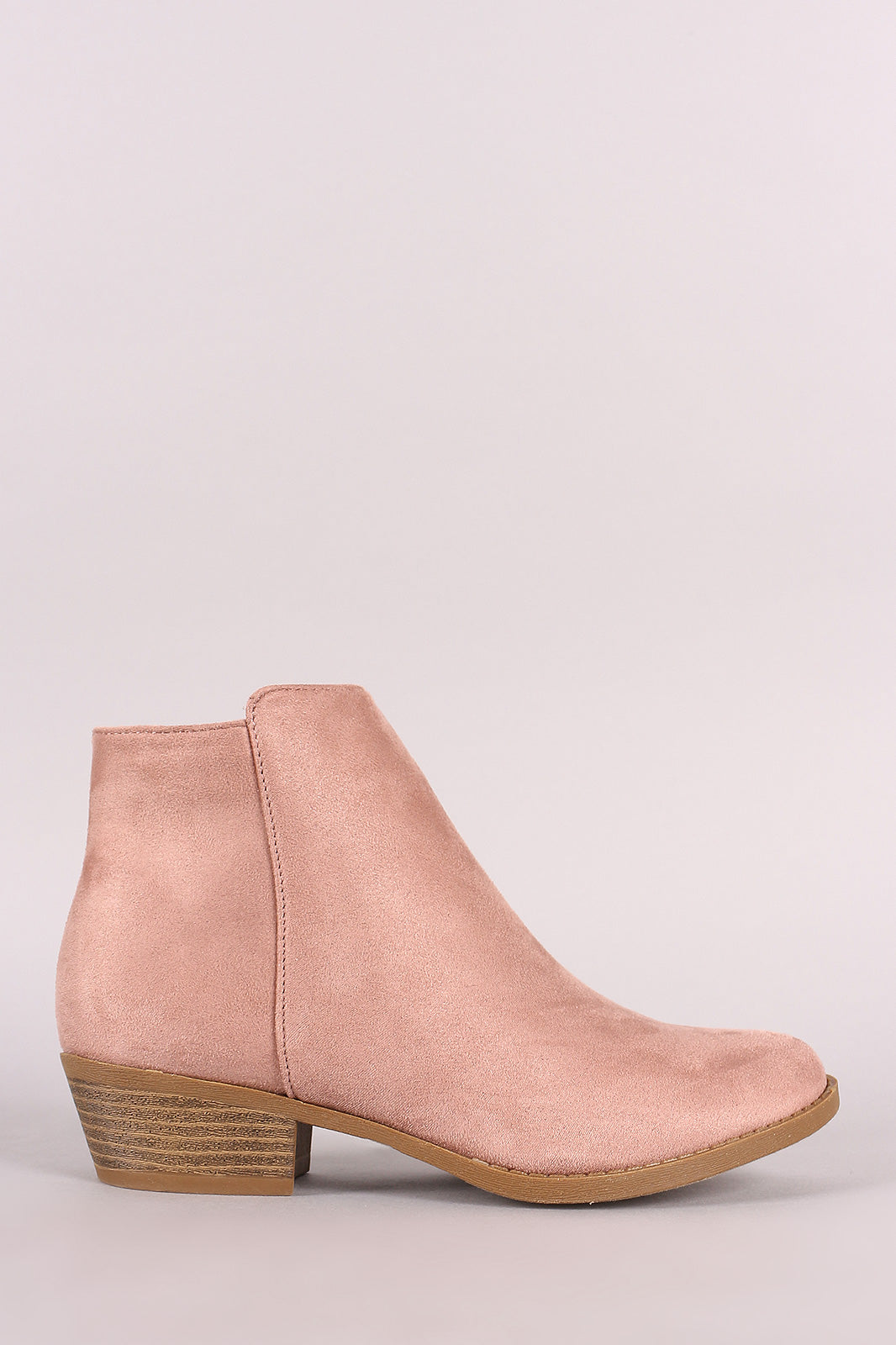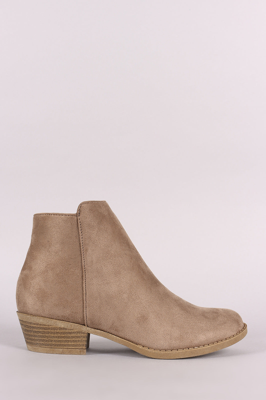 These chic booties feature a round toe silhouette, high-low topline, and low stacked heel. Finished with a cushioned insole, fabric lining, and inside zip-up closure.
