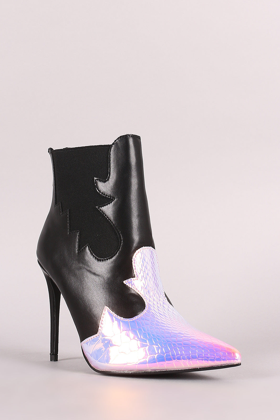 Snake Trim Pointy Toe Stiletto Chelsea Booties