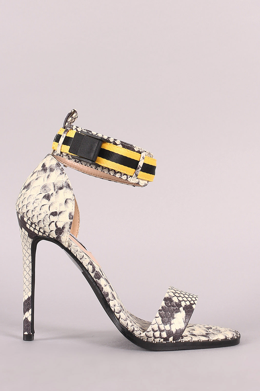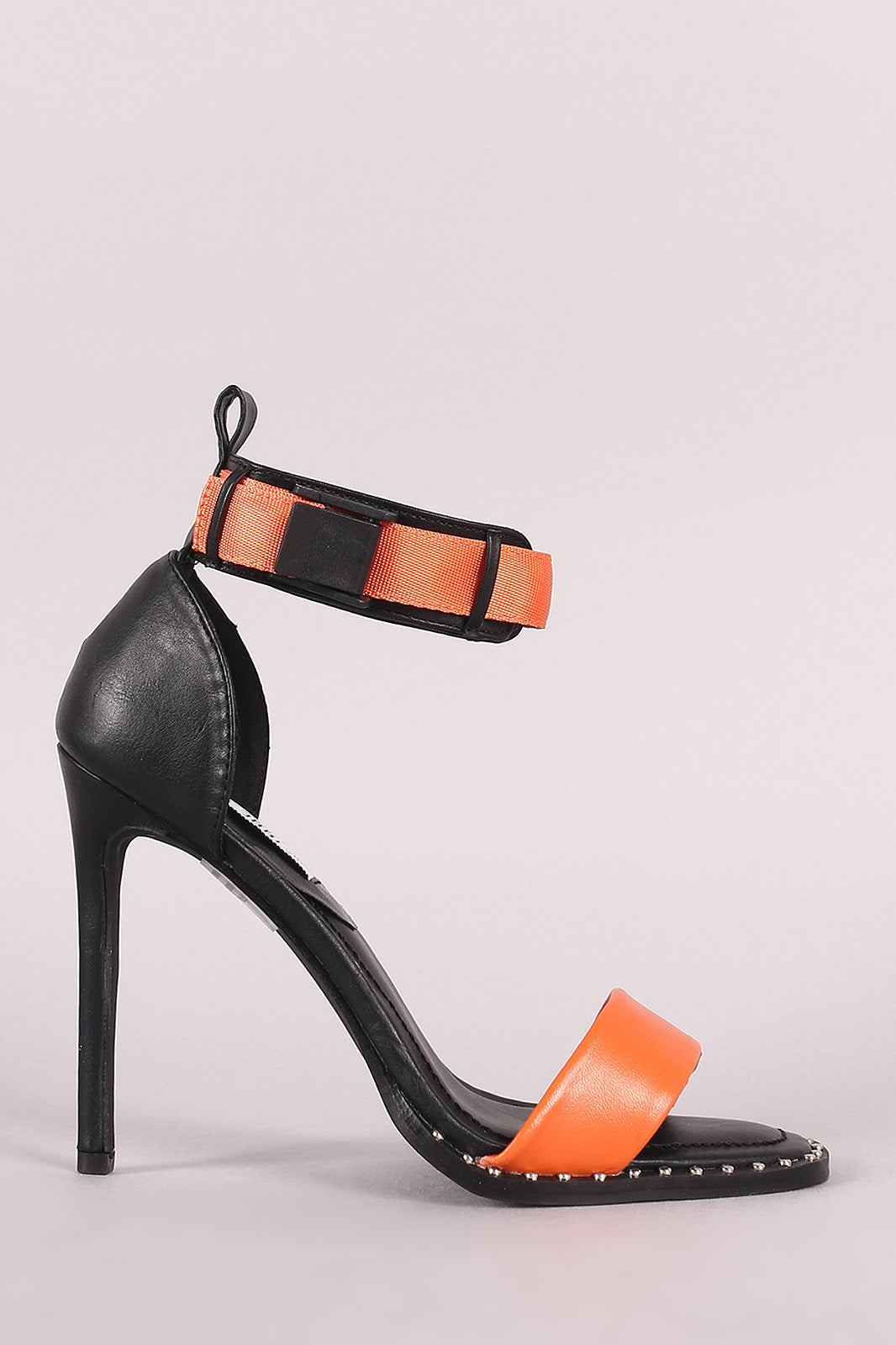 Studded Open Toe Ankle Strap Stiletto Heel