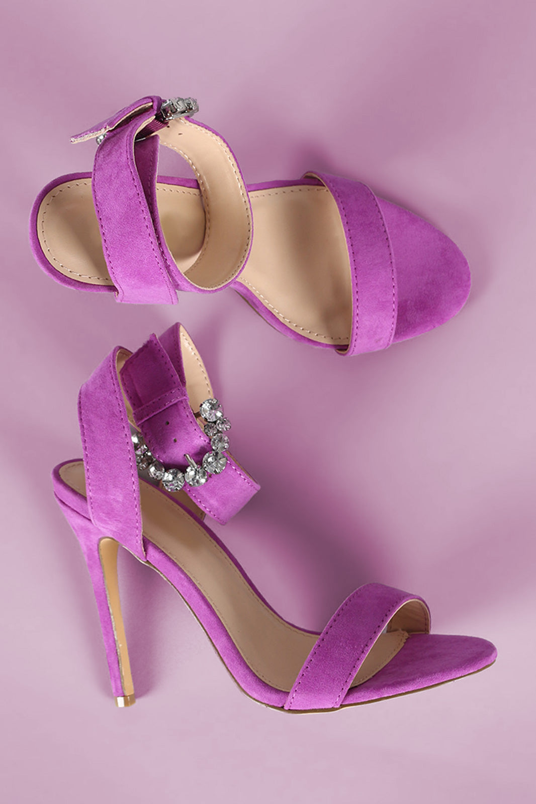 Suede Jeweled Buckled Ankle Strap Stiletto Heel